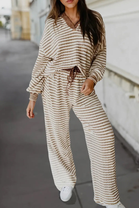Aubrie Stripped,Collared, and Drawstring Set